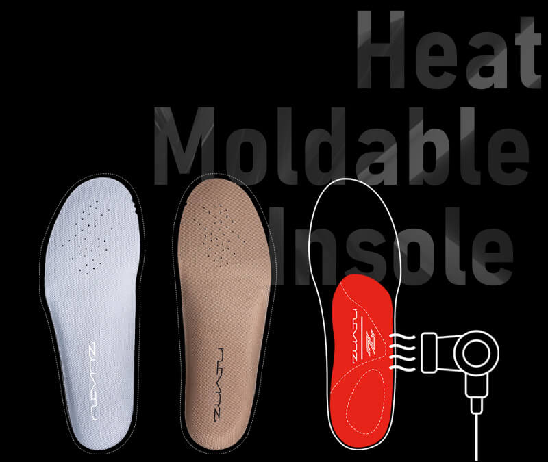 Premium footbeds of Z001 cycling shoes utilize heat molding insoles technology to create a superior footbed package. Moisture absorbent, breathable, ultra light. The combination of technical fabrics with exquisite handwork allows for a footbed that has a long lasting comfort as well as improved foot stability. At the heel of insole, as a buffer, shock absorption can efficiently mitigate shock and avoid injuring during exercise.