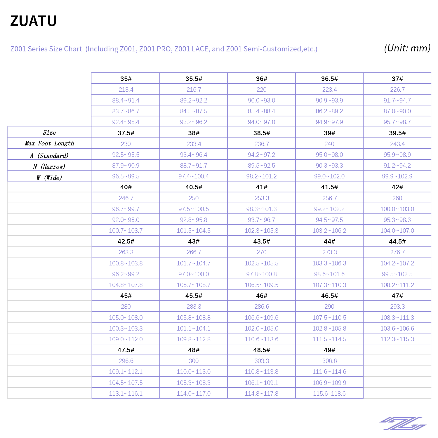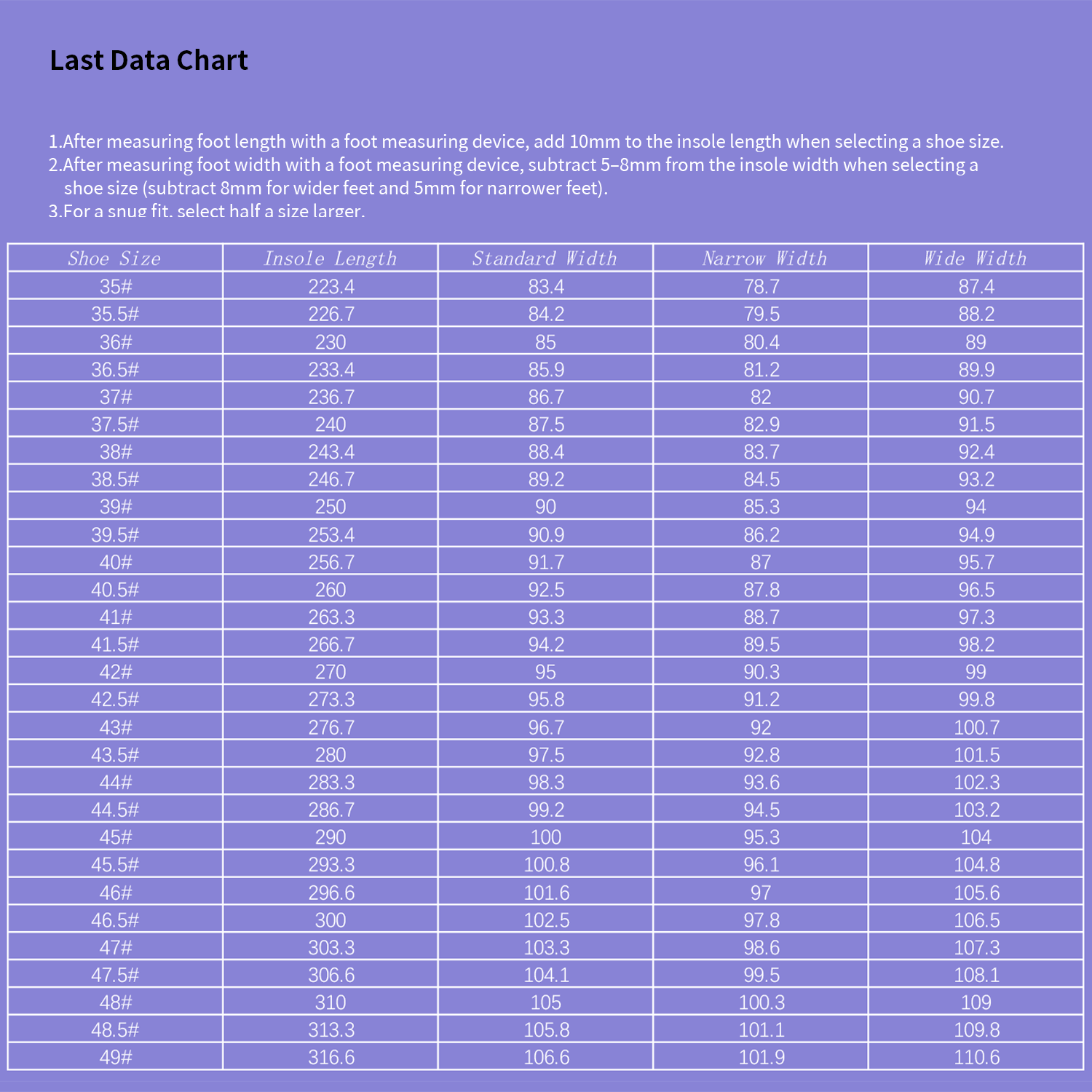 35, 35.5, 36, 36.5, 37, 37.5, 38, 38.5, 39, 39.5, 40, 40.5, 41, 41.5, 42, 42.5, 43, 43.5, 44, 44.5, 45, 45.5, 46, 46.5, 47, 47.5, 48, 48.5, 49